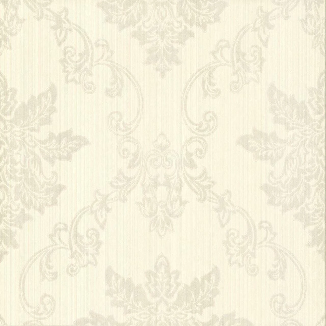 1601-106-02 Hampton Rosemore Wallpaper By 1838 Wallcoverings features a luxurious damask style wallpaper shown here in Natural tones of cream and soft taupe creating a classic and timeless wallpaper choice.