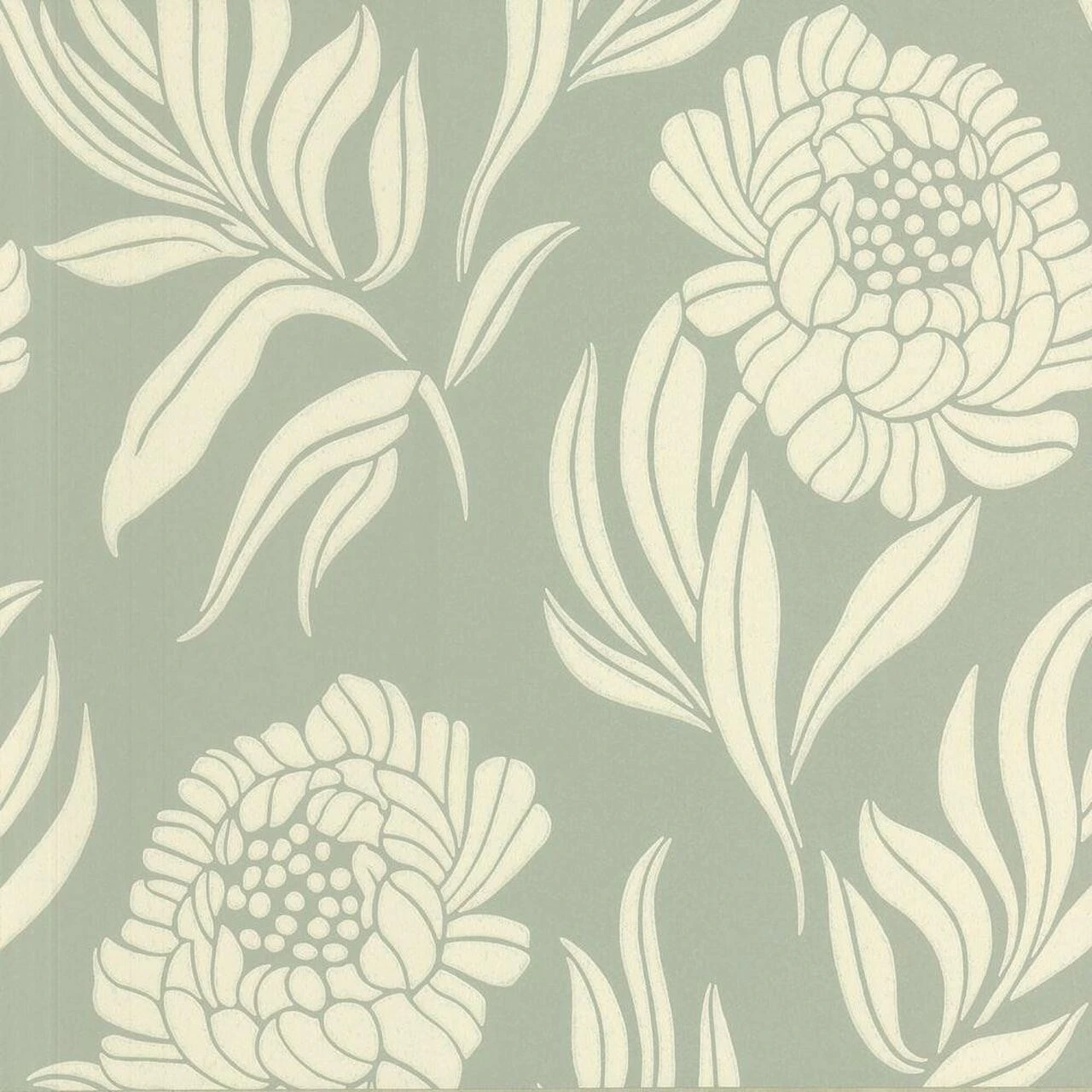 1602-106-02 Chatsworth Avington Wallpaper By 1838 Wallcoverings is a beautiful design of oversized, lush blooms and can be used as a feature wall or on all four walls for a more contemporary look, shown here in Duck Egg and Cream.