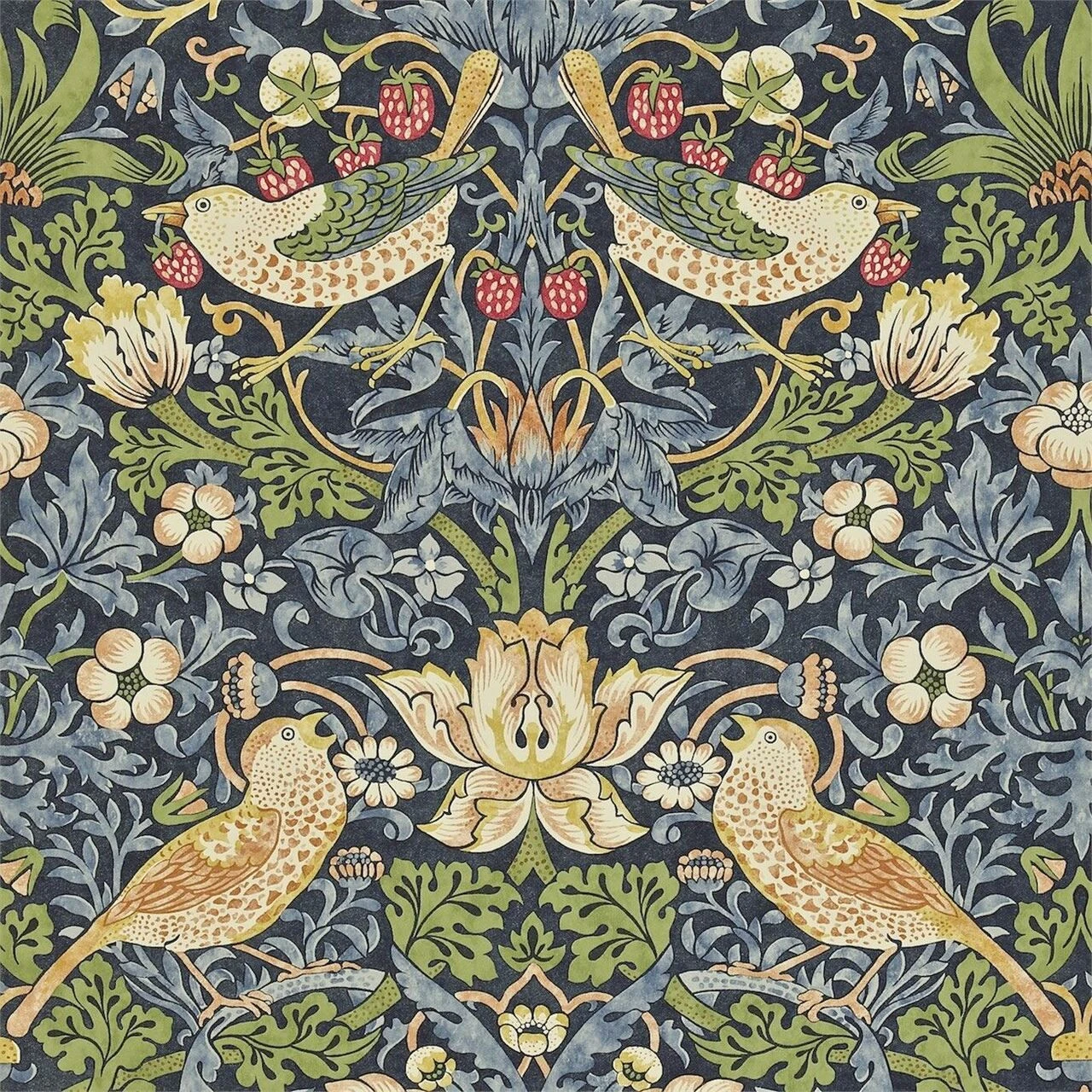 Strawberry Thief wallpaper by Morris & Co is an iconic design created by William Morris, dating back to 1833. The Strawberry Thief wallpaper design is a playful depiction of cheeky birds pecking at strawberries amongst vines and shrubbery. William Morris originally created Strawberry Thief to reflect the struggle gardeners have with birds eating their fruits. At Kelmscott Manor, after his attempts to grow strawberries William Morris experienced the same problem! Expertly replicated as a wallpaper print by Morris & Co, the Strawberry Thief wallcovering reflects the original quality and finish William Morris achieved, with gravure printing methods and subtle textures to retain a hand printed look to the wallpaper.