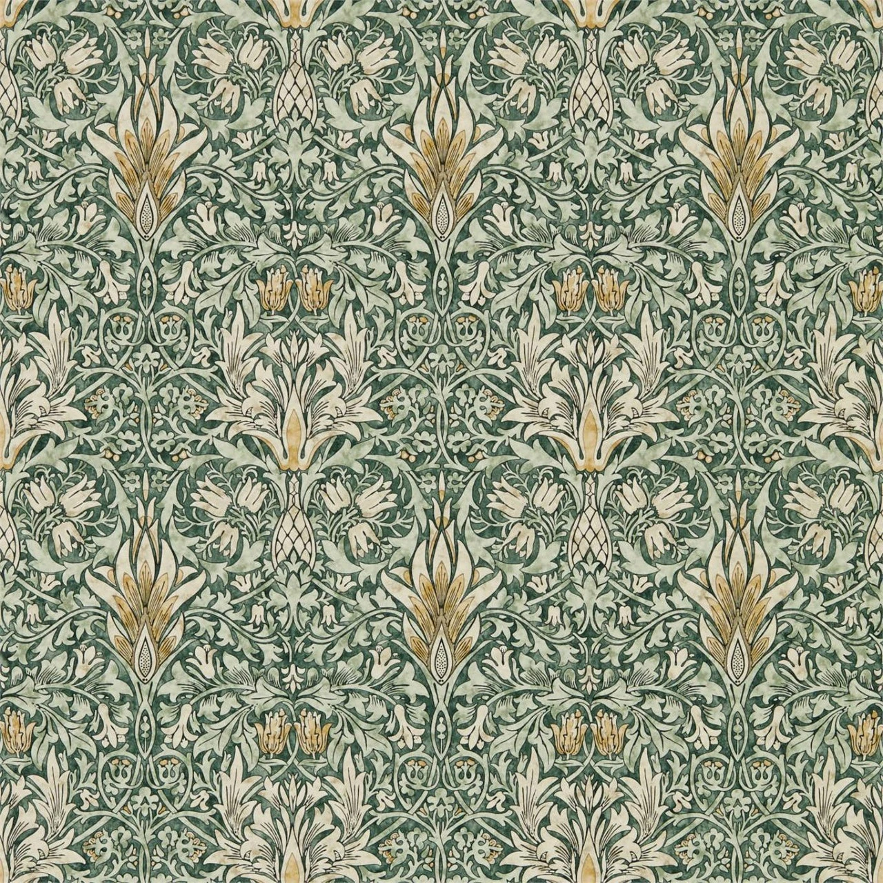 Originally produced in 1876, 216863 Snakeshead wallpaper from the Compilation collection by Morris & Co is reportedly one of William Morriss favourite designs and features clusters of snakeshead fritillaries, presented in a range of earthy colour options, shown here in Forest and Thyme.