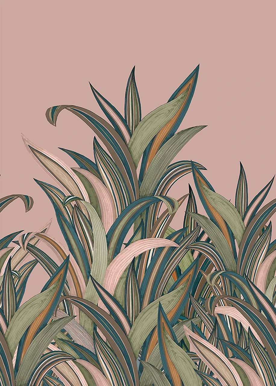 542219 Tropical Grasses mural wallpaper by Studio Onszelf Amsterdam from the Amazing collection for Rasch is a flamboyant and exotic design featuring overlapping tropical grasses presented in a range of vibrant colourways and shown here in tones of pink and multi.