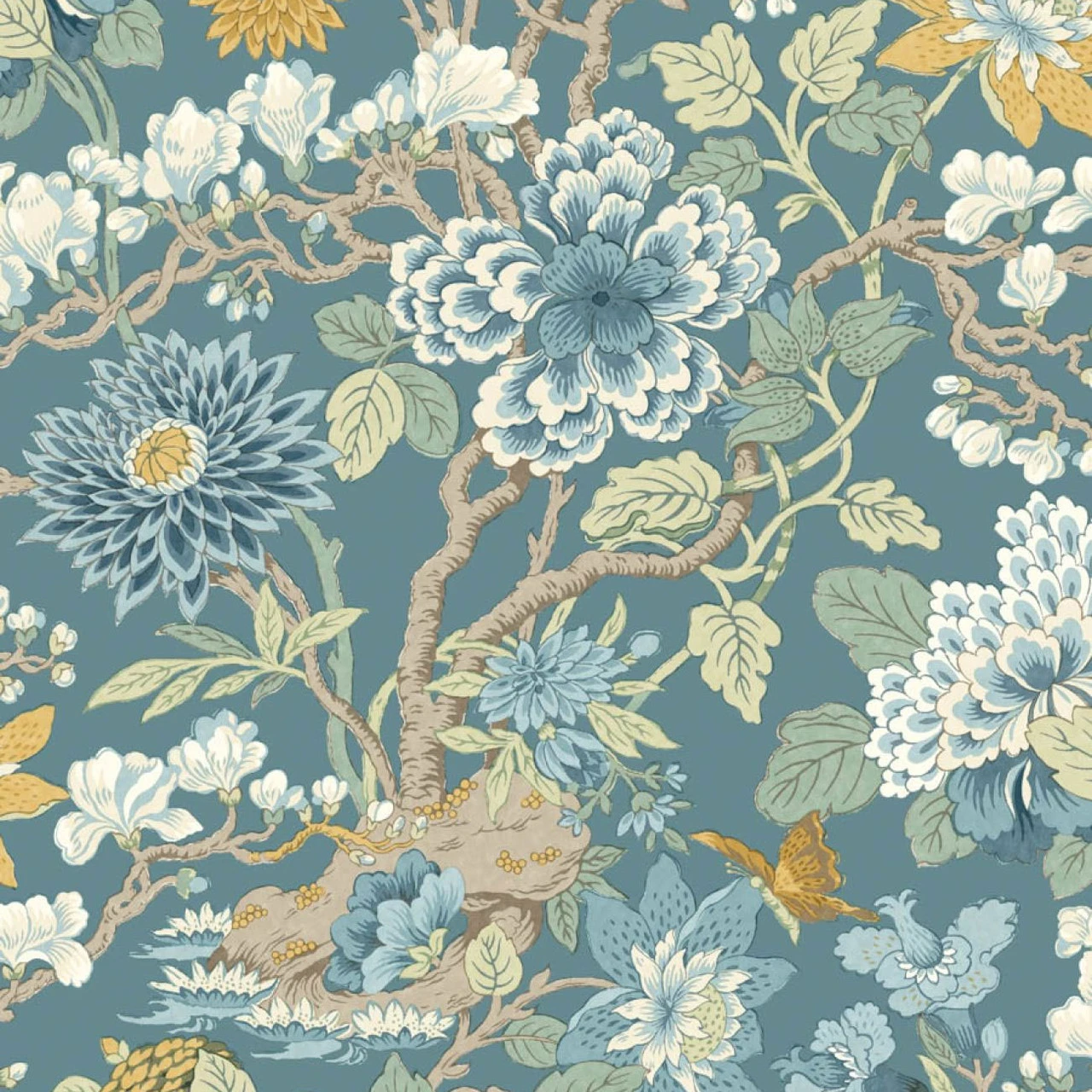 Hand painted by the renowned William Turner in 1913, BW45121/3 Little Magnolia wallpaper has been reimagined for the Baker Originals collection by G P & J Baker in refreshing new colour options. Featuring blooming magnolia flowers, chrysanthemum and hydrangea blossom, printed in a new smaller scale to form Little Magnolia. Shown here in Denim and Ochre.
