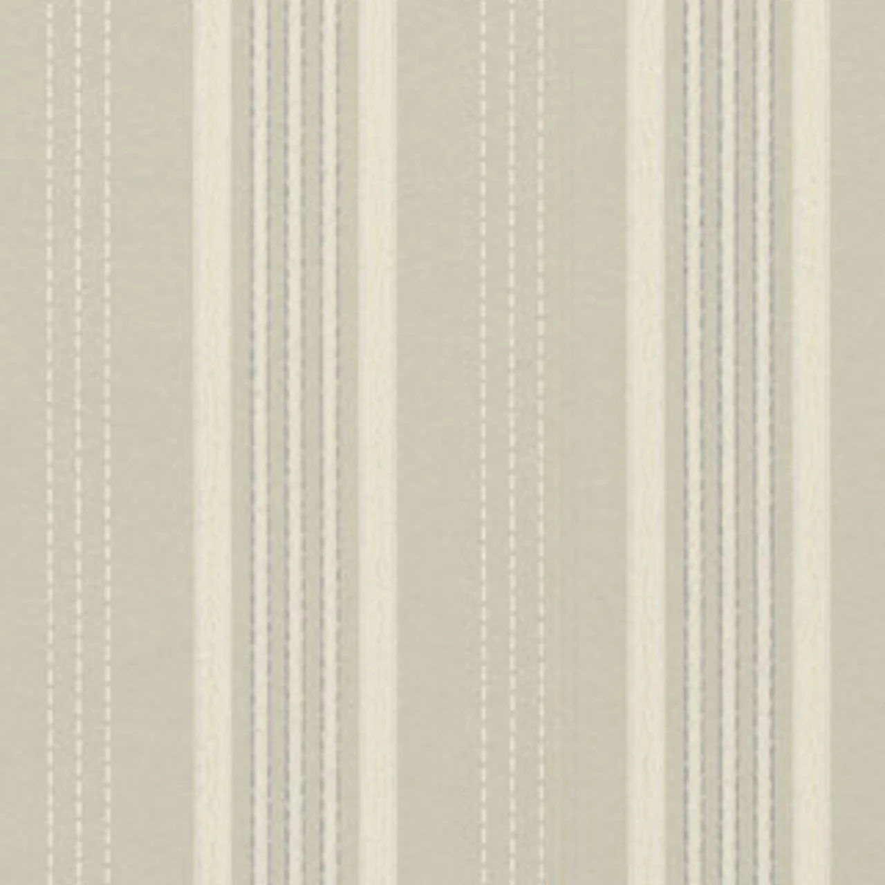 FG067J79 Narrow Ticking Stripe Heirloom Wallpaper From Mulberry Home, shown here in Silver and Ivory.
