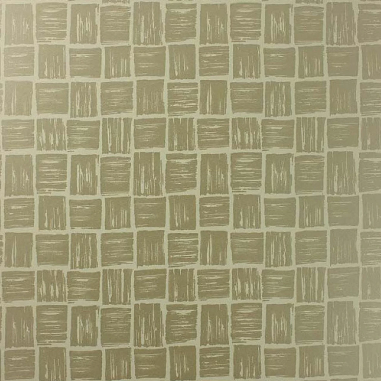 NCW4185-02 Cathay Mahayana Wallpaper By Nina Campbell is an elegant and versatile design featuring basket weave squares with metallic brush stroke detailing, shown here in Gold.