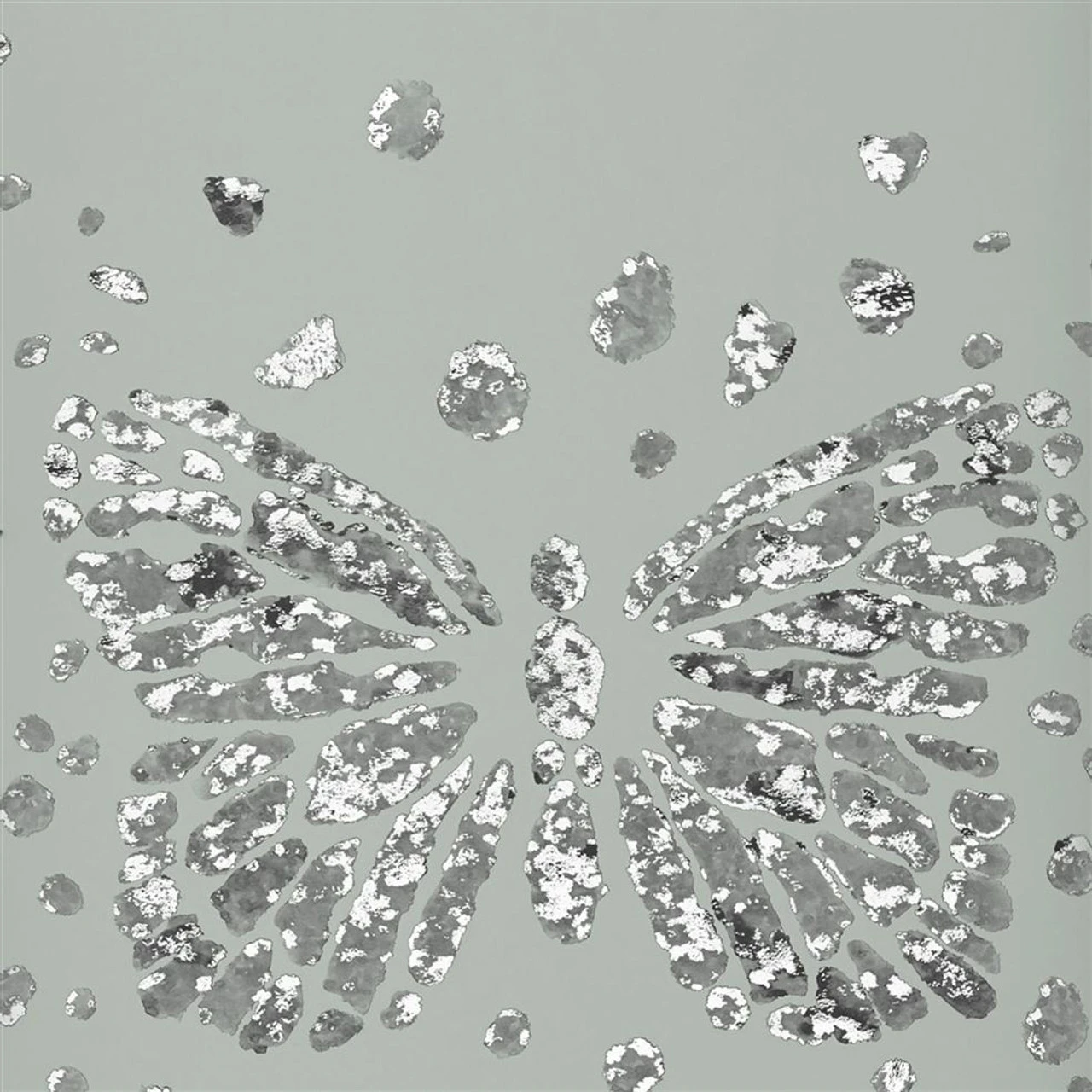 PCL7026/05 Les Messagers Paradis Barbares Wallpaper By Christian Lacroix is an abstract series of stamps which creates a serene scene of large scale mosaic butterflies featuring a crackled effect in the motifs, some enhanced with shimmering metallic highlights. Les Messagers Wallpaper is a beautiful iconic wide width wallpaper and is printed onto a non-woven substrate for ease of application, shown here in Souris.