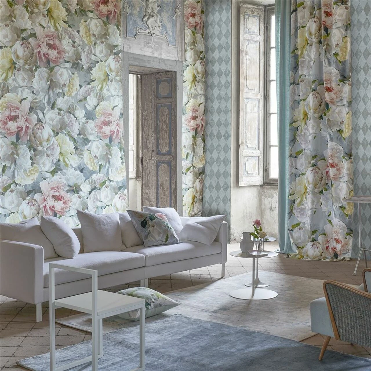 PDG1102/01 Peonia Grande Foscari Fresco Wallpaper By Designers Guild is an impressive wallpaper panel featuring beautiful hand painted peonies, layered effortlessly on a brush-stroked ground in shades of translucent colour. Peonia Grande Wallpaper is digitally printed onto a non-woven substrate for ease of application. This dazzling wallpaper is sold per panel set on a single roll comprising of 2 x 70cm wide drops each 3m high – coverage 4.2m2 but can be joined together in multiples according to your wall widths and trimmed in the height if required.