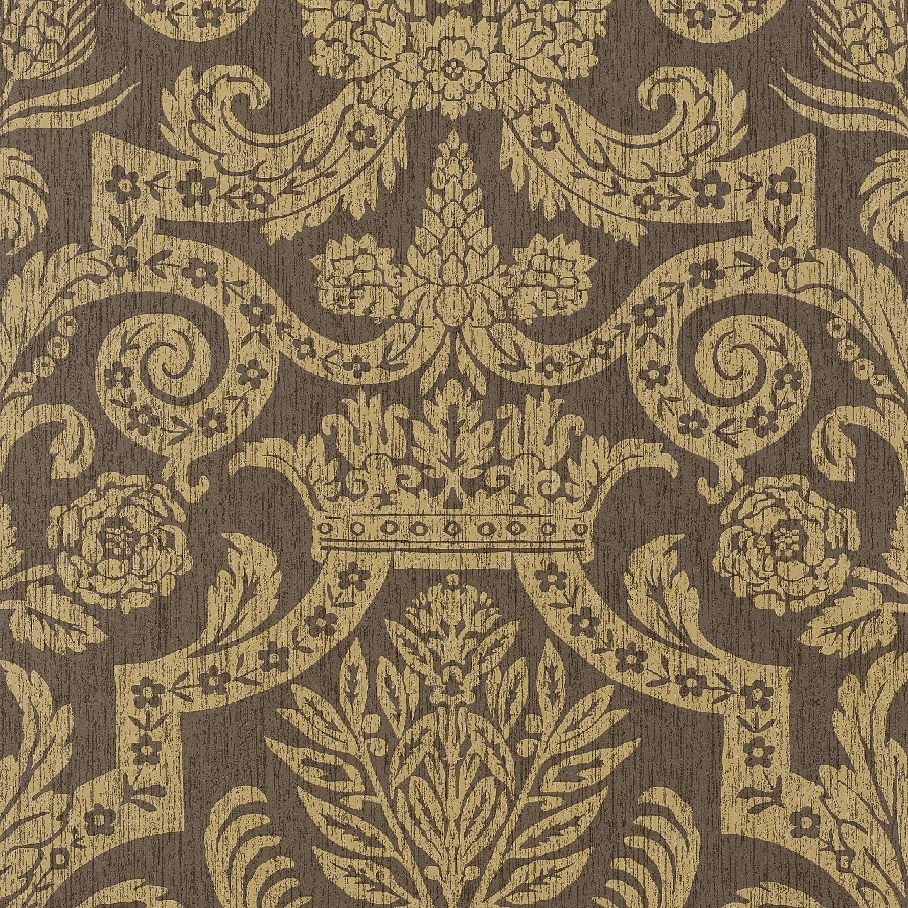 Harvard Damask is a stately translation of a wooden block-printed antique document featuring scrolls and sunbursts, and representing a flair for life.