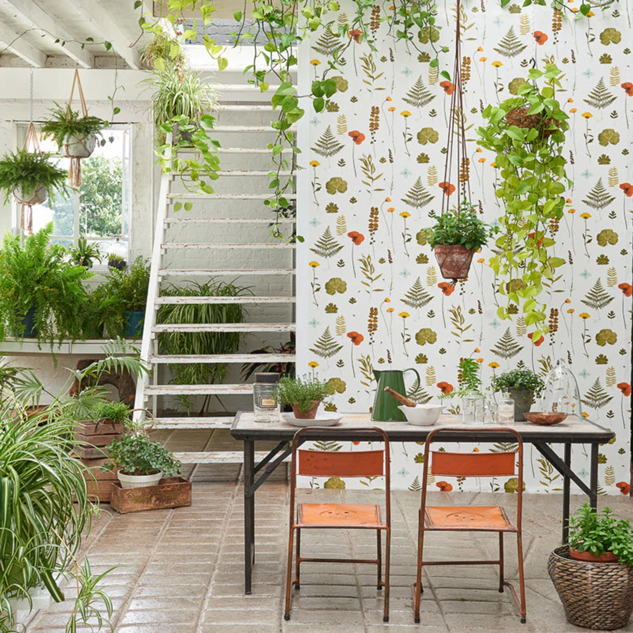 W0091/04 Herbarium Botanica Wallpaper By Clarke & Clarke features a refreshing botanical motif with various natural flowers and leaves, closely repeated for an all over montage of botanical prints, shown here in Blush.