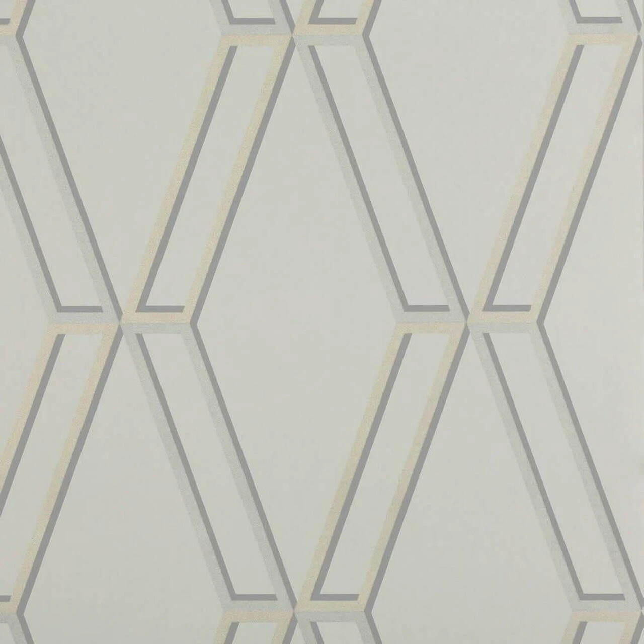 W395/03 Marquise Lomasi Wallpaper by Romo features a dramatic large scale diamond design with eye catching metallic detailing, shown here in Turtle Dove.